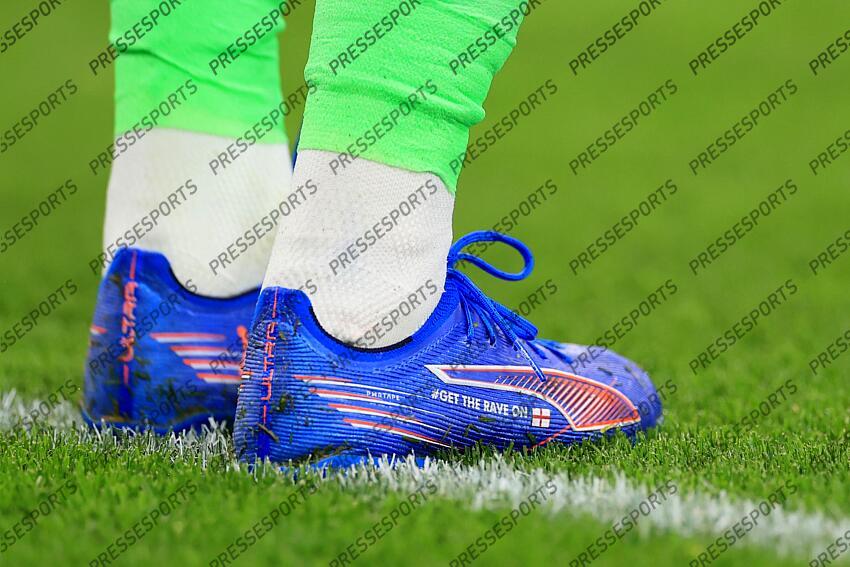 29 September 2025 - Premier League - Everton v West Ham United - the boots of Everton goalkeeper Jordan Pickford with the slogan ‘get the rave on ‘ - Photo: Simon Stacpoole / Offside. EVERTON-WEST HAM (1-1)