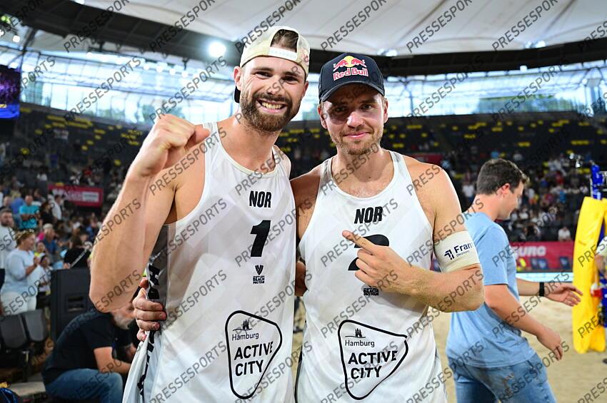 Sieger Anders Mol, Christian Sorum (Norwegen) Hamburg, 31.08.2025, Beachvolleyball, Volleyball World Beach Pro Tour Elite 16 in Hamburg, Finale, Herren Beachvolleyball