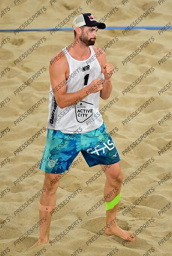 Anders Mol (Norwegen) Hamburg, 31.08.2025, Beachvolleyball, Volleyball World Beach Pro Tour Elite 16 in Hamburg, Finale, Herren Beachvolleyball