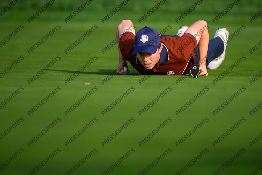 250927 Matt Fitzpatrick of Team Europe during a foursome match on day 2 of The Ryder Cup on September 27, 2025 in New York. Photo: Jesper Zerman / BILDBYRÅN / kod JZ / JZ0618 golf ryder cup day 2 bbeng DAY TWO FOURSOMES