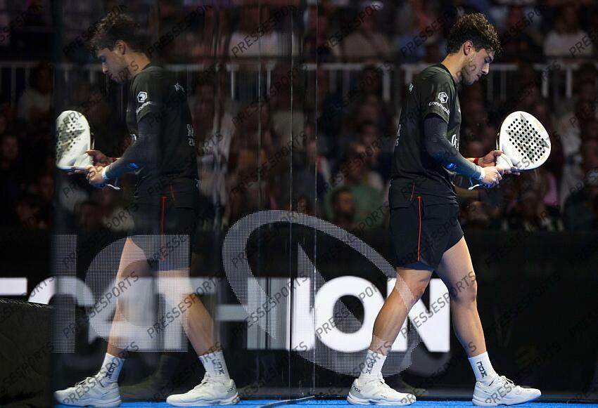 ROTTERDAM - Coello/Tapia (black) in action against Cgingotto/Gallan (green) during the Decathlon Premier Padel Rotterdam final in Ahoy. ANP FREEK VAN DEN BERGH DECATHLON PREMIER PADEL ROTTERDAM