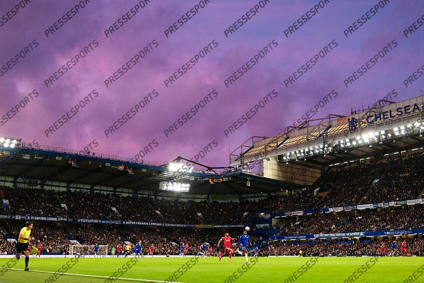 04 October 2025, London - Premier League Football - Chelsea v Liverpool - A general view of play within Stamford Bridge at sunset - Photo: Jacques Feeney / Offside. CHELSEA-LIVERPOOL FC (2-1)