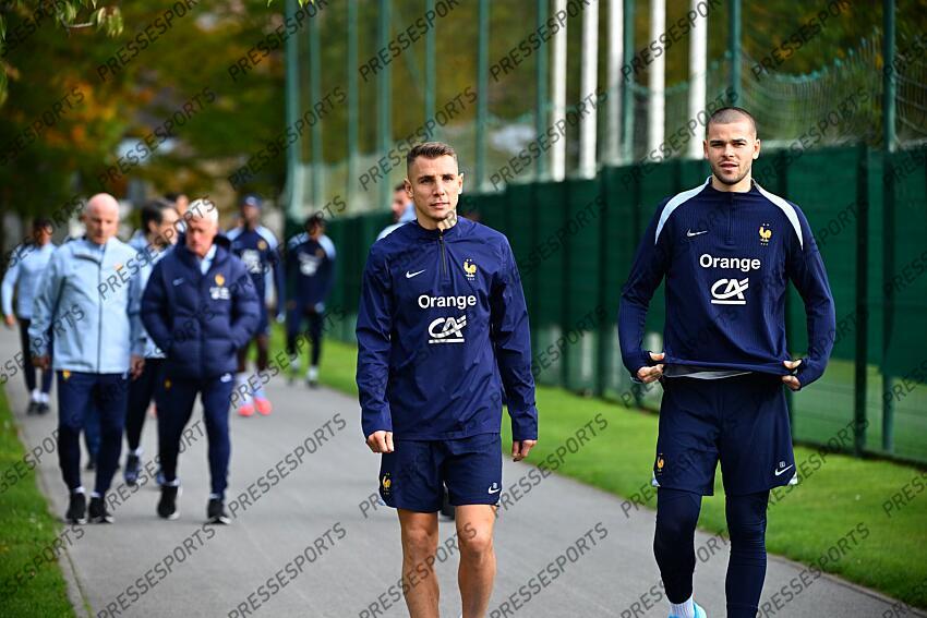 Digne (Lucas) Chevalier (Lucas) FOOT ELIMINATOIRES COUPE DU MONDE 2026 2025 STAGE FRANCE CENTRE TECHNIQUE FERNAND SASTRE CLAIREFONTAINE FRANCE 06/10/2025 LAHALLE PIERRE avant france/azerbaidjan