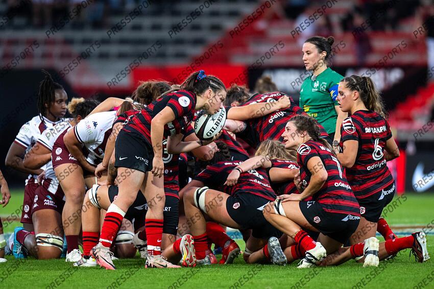 HERMET (Gaelle), PEDUSSAUD (Lylou), discussion,melee RUGBY ELITE 1 2025 TOULOUSE-BORDEAUX (29-19) STADE ERNEST WALLON TOULOUSE FRANCE 12/10/2025 Fred LANCELOT/PRESSE SPORTS