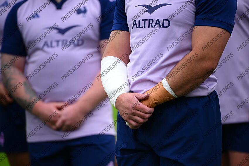 RUGBY TOURNEE D'AUTOMNE 2025 STAGE FRANCE CENTRE NATIONAL DE RUGBY MARCOUSSIS FRANCE 29/10/2025 REAU ALEXIS Avant France-Afrique du sud strapping