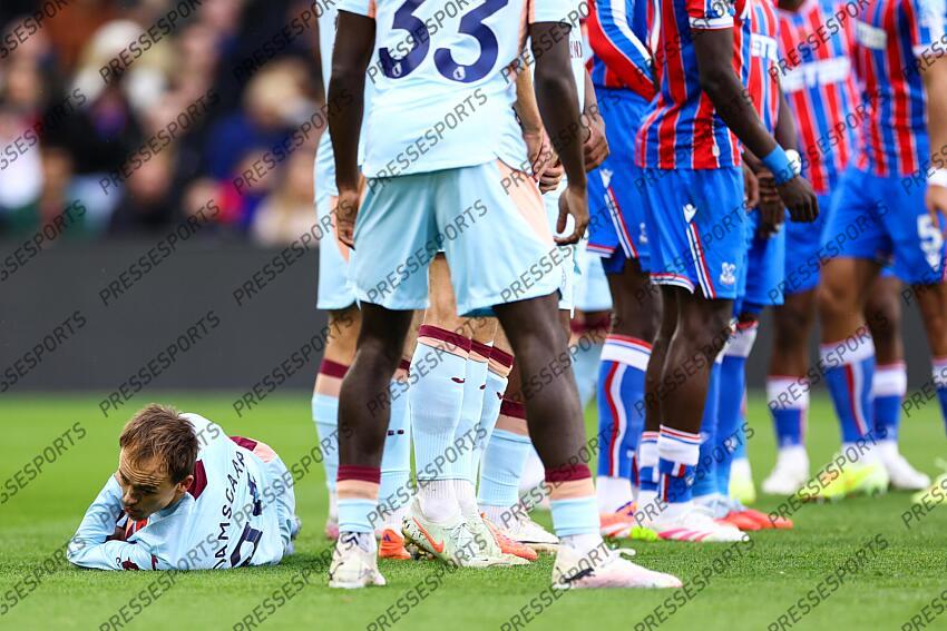 01 November 2025, London - Premier League Football - Crystal Palace v Brentford - Mikkel Damsgaard of Brentford lays down behind the wall - Photo: Jacques Feeney / Offside. CRYSTAL PALACE-BRENTFORD (2-0)