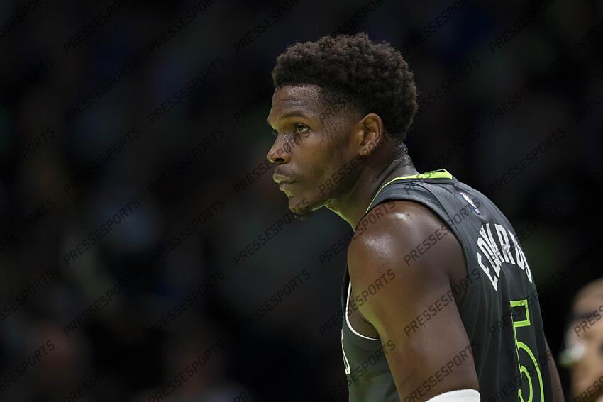 Nov 7, 2025; Minneapolis, Minnesota, USA; Minnesota Timberwolves guard Anthony Edwards (5) looks on against the Utah Jazz in the first half at Target Center. Mandatory Credit: Jesse Johnson-Imagn Images NBA: Utah Jazz at Minnesota Timberwolves