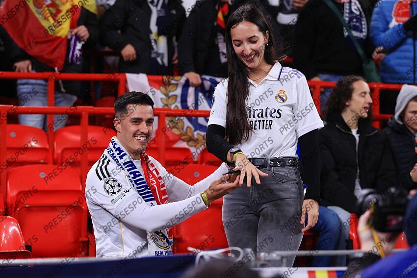 4th November 2025 - UEFA Champions League - League Phase - Liverpool v Real Madrid - A man poses with his fiance after proposing to her before the match - Photo: Simon Stacpoole / Offside. LIVERPOOL FC-REAL MADRID (1-0)
