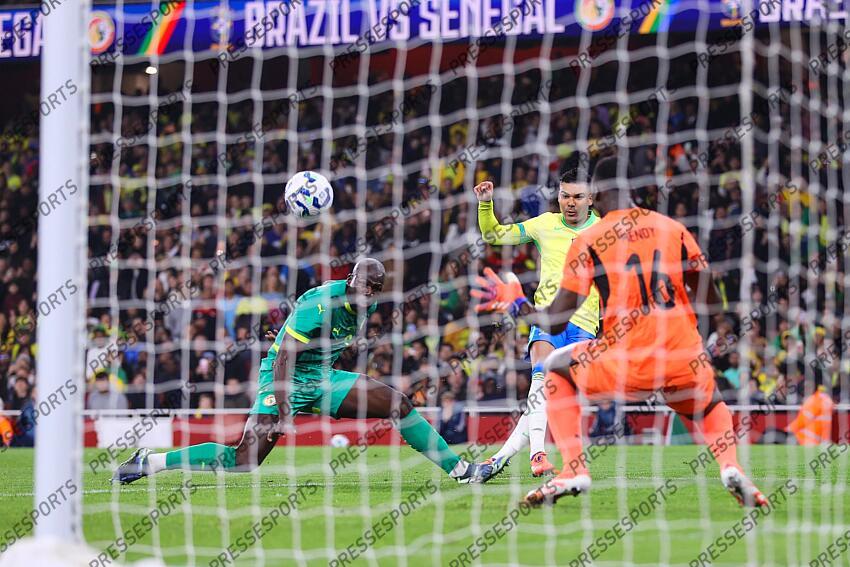 15 November 2025, London - International Friendly - Brazil v Senegal - Casemiro of Brazil scores their second goal - Photo: Jacques Feeney / Offside. BRESIL-SENEGAL (2-0)