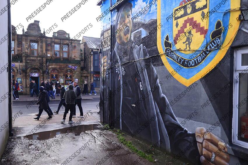 22nd November 2025 - Premier League - Burnley v Chelsea - Fans walk past a mural featuring former Burnley manager and current Bayern Munich coach Vincent Kompany - Photo: Simon Stacpoole / Offside. BURNLEY-CHELSEA (0-2)