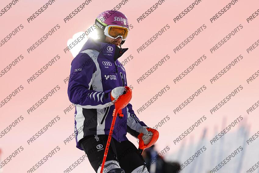 LEVI, FINLAND - NOVEMBER 16: Linus Strasser of Team Germany inspects the course during the Audi FIS Alpine Ski World Cup Men's Slalom on November 16, 2025 in Levi, Finland. (Photo by Christophe Pallot/Agence Zoom) SLALOM HOMMES