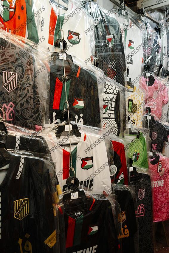 Des maillots palestiniens sont en vente dans les marchés de Kuala Lumpur FOOT MATCH AMICAL 2025 MALAISIE-PALESTINE (1-0) KUALA LUMPUR MALAISIE 10/09/2025 LEBAN SEBASTIEN