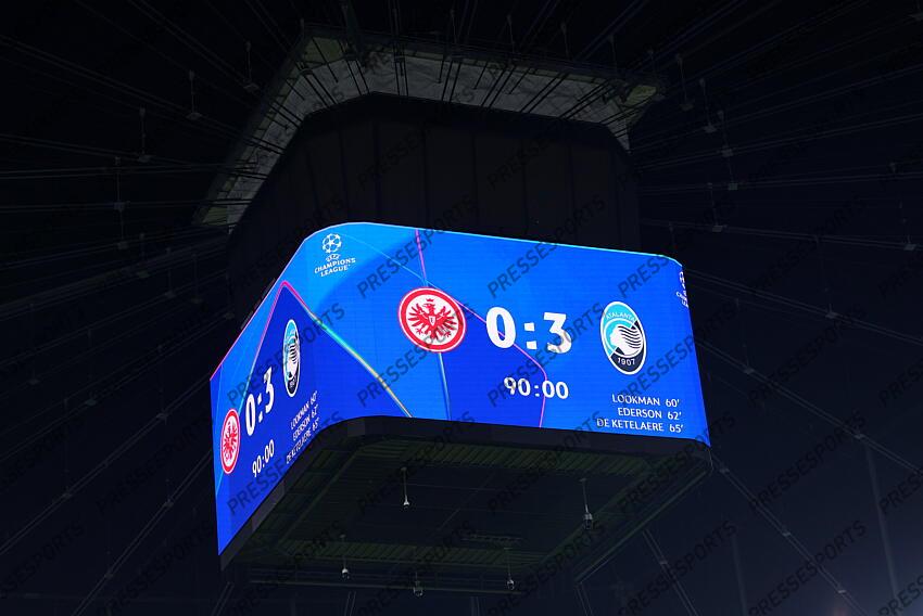Videowuerfel mit Endstand, Deutsche Bank Park Frankfurt, 26.11.2025, Fussball, UEFA Champions League, Ligaphase - Spieltag 5, Eintracht Frankfurt - Atalanta Bergamo EINTRACHT FRANCFORT-ATALANTA BERGAME (0-3)