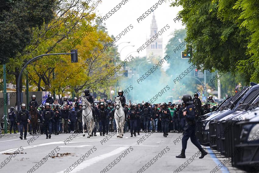 Arrival of Real Betis fans before the Spanish league, LaLiga EA Sports, football match played between Sevilla FC and Real Betis at Ramon Sanchez-Pizjuan stadium on November 30, 2025, in Sevilla, Spain. SEVILLE FC-BETIS SEVILLE (0-2)