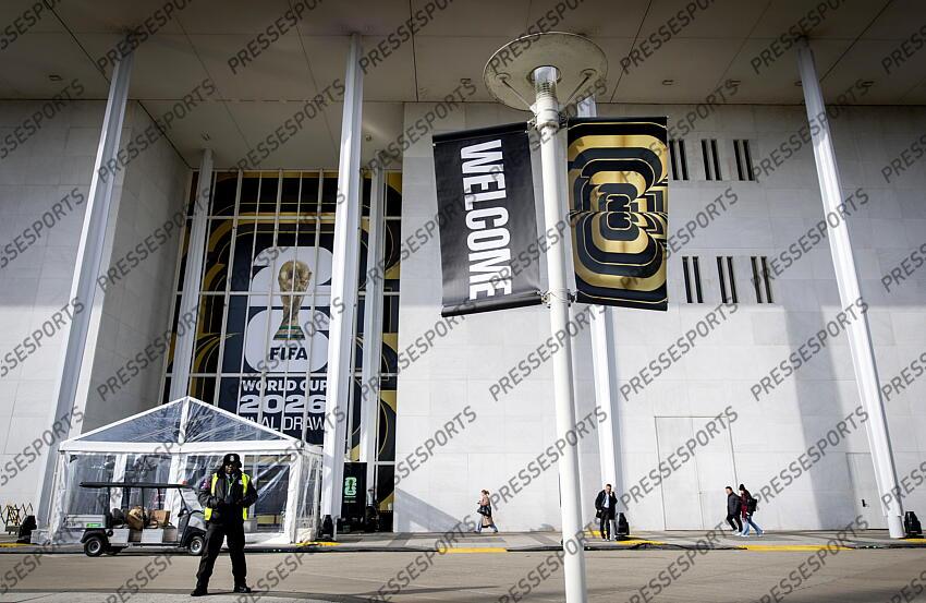 WASHINGTON - FIFA flags at the Kennedy Center on the day before the draw for the 2026 World Cup in the United States. ANP KOEN VAN WEEL TIRAGE AU SORT