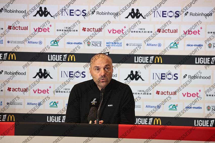 dujeux (alexandre) FOOT L1 2025 NICE-ANGERS (0-1) STADE ALLIANZ RIVIERA NICE FRANCE 07/12/2025 PITTORE ADRIEN conference de presse d'apres match