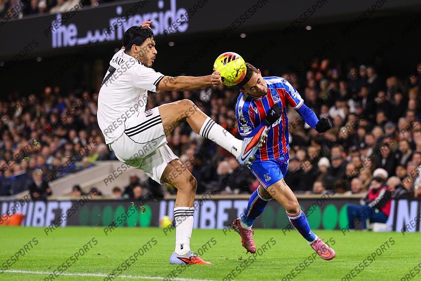 07 December 2025, London - Premier League Football - Fulham v Crystal Palace - Raul Jimenez of Fulham and Yeremi Pino of Crystal Palace - Photo: Jacques Feeney / Offside. FULHAM-CRYSTAL PALACE (1-2)