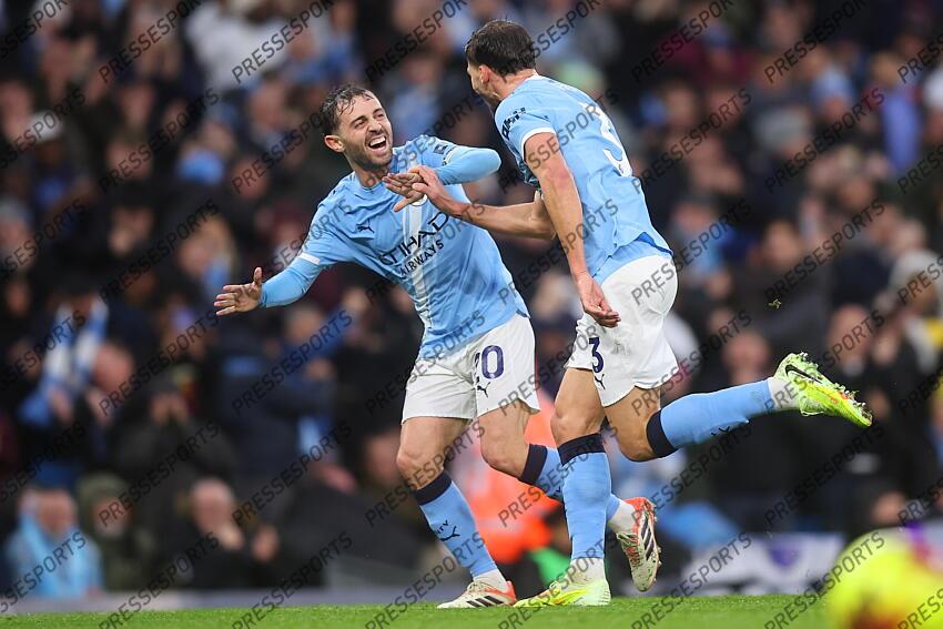 06 December 2025, Manchester - Premier League Football - Manchester City v Sunderland. Ruben Dias of Manchester City celebrates with Bernardo Silva of Manchester City after scoring their first goal to make the score 1-0 (photo by Daniel Chesterton) MANCHESTER CITY-SUNDERLAND (3-0)