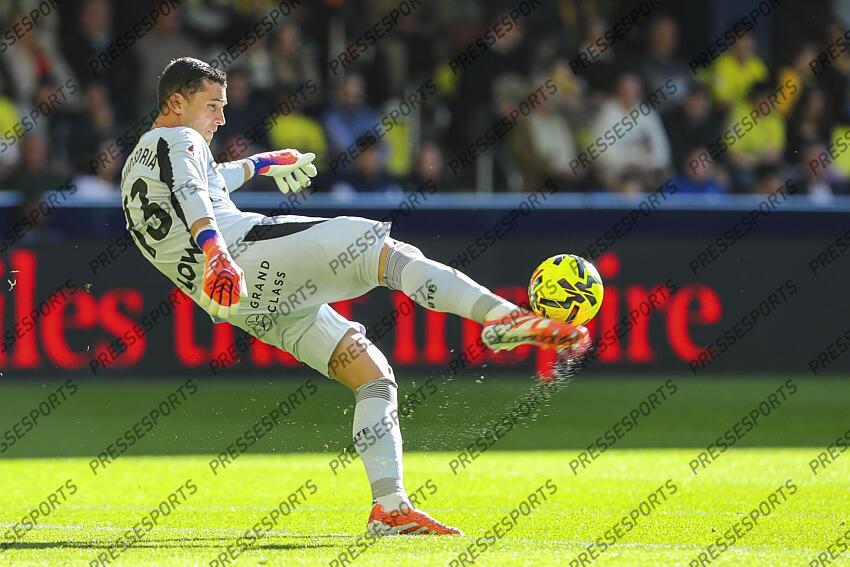 David Soria of Getafe CF in action during the Spanish league, LaLiga EA Sports, football match played between Villarreal CF and Getafe CF at La Ceramica stadium on December 6, 2025, in Villarreal, Spain. VILLARREAL-GETAFE (2-0)