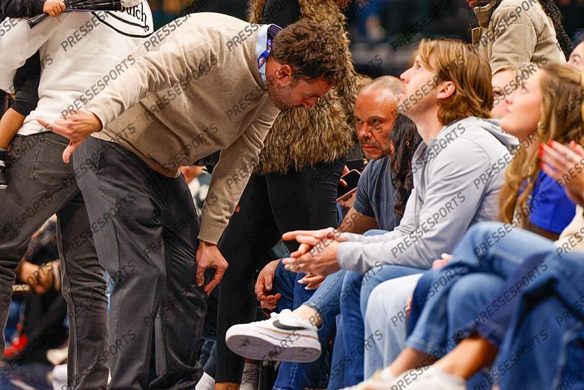 Dec 6, 2025; Dallas, Texas, USA; The United States Deputy Director of the FBI Dan Bongino, seated center, watches the game between the Dallas Mavericks and Houston Rockets at American Airlines Center. Mandatory Credit: Andrew Dieb-Imagn Images NBA: Houston Rockets at Dallas Mavericks