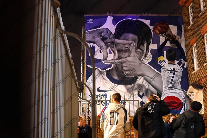 9th December 2025, London - Champions League Football - Tottenham Hotspur v SK Slavia Praha - A mural depicting ex-player Hueng-Min Son - Photo: Charlotte Wilson / Offside. TOTTENHAM-SLAVIA PRAGUE (3-0)
