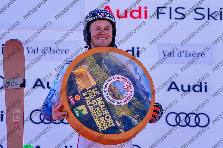 VAL D'ISERE, FRANCE - DECEMBER 14: Timon Haugan of Team Norway takes 1st place during the Audi FIS Alpine Ski World Cup Men's Slalom on December 14, 2025 in Val d'Isere, France. (Photo by Michel Cottin/Agence Zoom) SLALOM HOMMES VAL D'ISERE