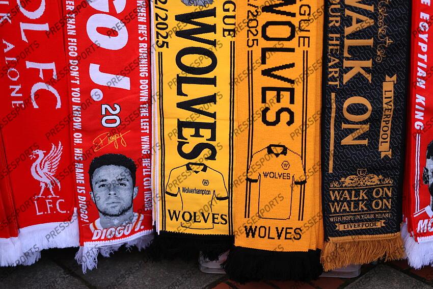 27th December 2025 - Premier League - Liverpool v Wolverhampton Wanderers - Scarves featuring the face of former Liverpool and Wolverhampton Wanderers player Diogo Jota - Photo: Simon Stacpoole / Offside. LIVERPOOL6WOLVERHAMPTON (2-1)