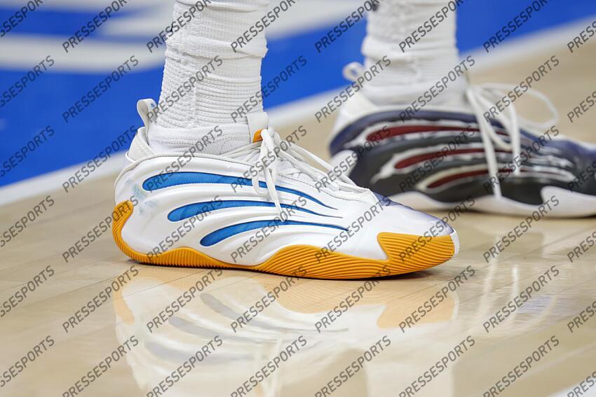 Dec 29, 2025; Oklahoma City, Oklahoma, USA; A close up view of Oklahoma City Thunder guard Jalen Williams shoes during the second half against the Atlanta Hawks at Paycom Center. Mandatory Credit: Alonzo Adams-Imagn Images NBA: Atlanta Hawks at Oklahoma City Thunder NBA: Atlanta Hawks at Oklahoma City Thunder