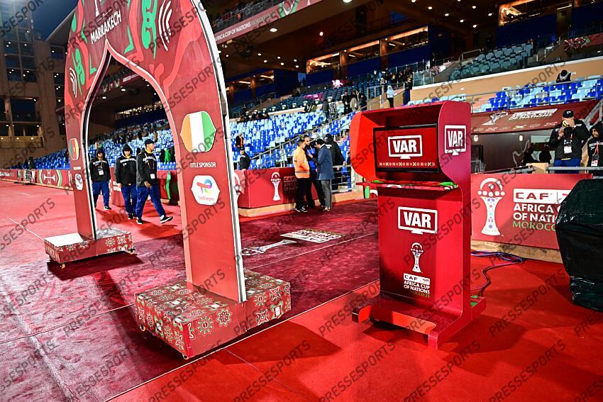 FOOT COUPE D'AFRIQUE DES NATIONS CAN 2025/2026 2025 COTE D'IVOIRE-CAMEROUN (1-1) STADE DE MARRAKECH MARRAKECH MAROC 28/12/2025 AUTISSIER JEAN BAPTISTE PORTIQUE ecran VAR