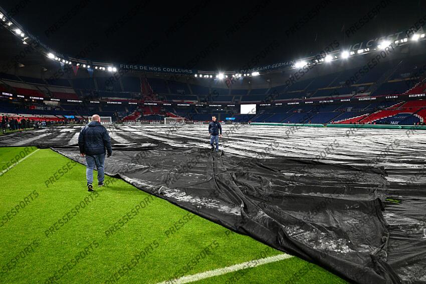 FOOT L1 2026 PSG-PARIS FC (2-1) PARC DES PRINCES PARIS FRANCE 04/01/2026 FAUGERE FRANCK debachage de la pelouse froid