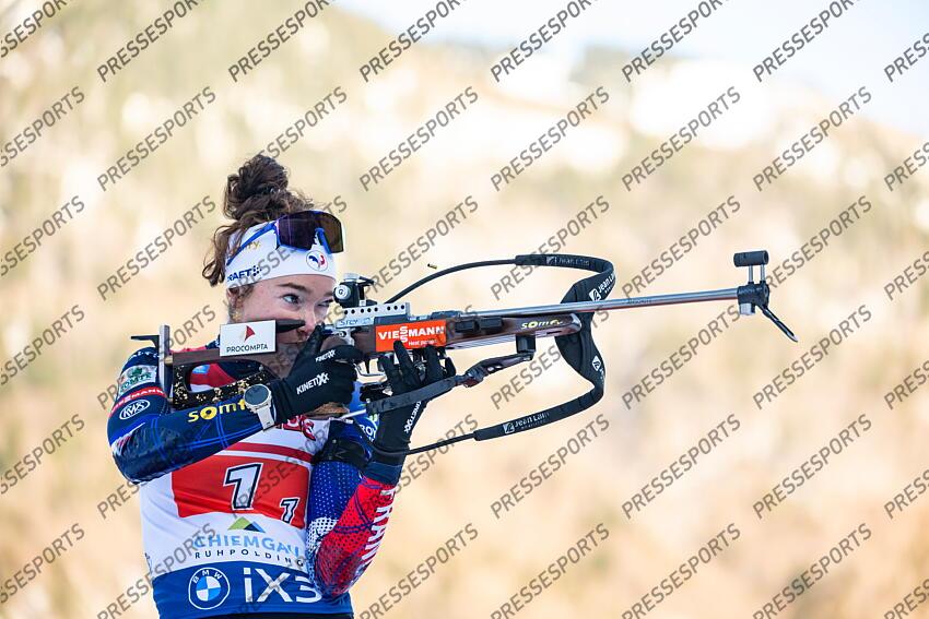 RUHPOLDING, GER - JANUARY 14: Lou Jeanmonnot of Team France at the shooting range during the BMW IBU Biathlon World Cup women relay on january 14, 2025 in Ruhpolding, Germany. (Photo by Kevin Voigt/Agence Zoom) BIATHLON RUHPOLDING