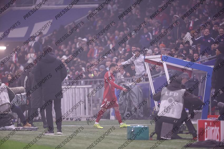 del castillo (romain) FOOT L1 2026 LYON-BREST (2-1) GROUPAMA STADIUM DECINES CHARPIEU FRANCE 18/01/2026 MARTIN ALEX carton rouge