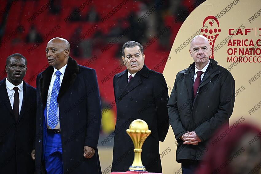motsepe (patrice) Prince Moulay El Hassan infantino (gianni) FOOT COUPE D'AFRIQUE DES NATIONS CAN 2025/2026 2026 SENEGAL-MAROC (1-0 ap) STADE PRINCE MOULAY ABDELLAH RABAT MAROC 18/01/2026 MANTEY STEPHANE