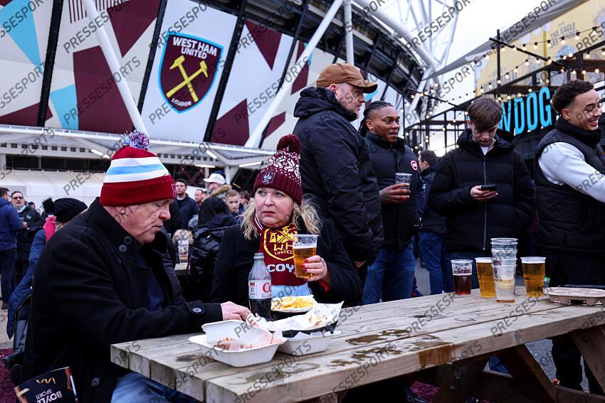 27th December 2025, London - Premier League Football - West Ham United v Fulham - West Ham fans enjoy food and pints of beer - Photo: Charlotte Wilson / Offside. WEST HAM UNITED-FULHAM (0-1)