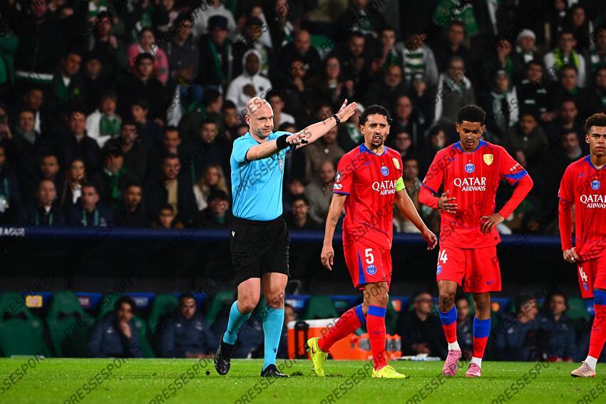 taylor (anthony) marquinhos FOOT LIGUE DES CHAMPIONS 2026 SPORTING PORTUGAL-PSG (2-1) STADE JOSE ALVALADE LISBONNE PORTUGAL 20/01/2026 GARNIER ETIENNE but annule