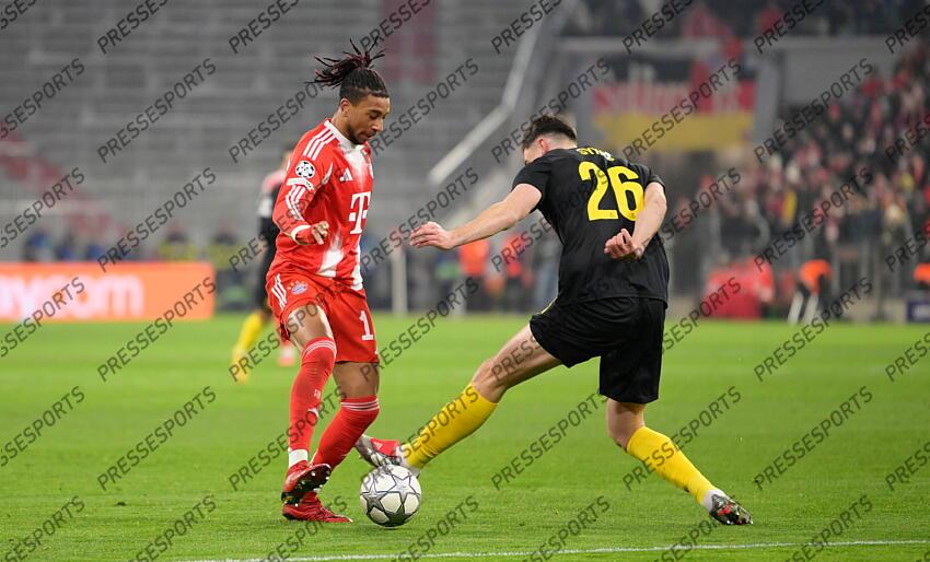 v.l. Michael Olise (Bayern), Ross Sykes Muenchen, 21.01.2026, Fussball, UEFA Champions League, Ligaphase - Spieltag 7, FC Bayern Muenchen - Union Saint-Gilloise BAYERN MUNICH-UNION SAINT GILLOISE (2-0)
