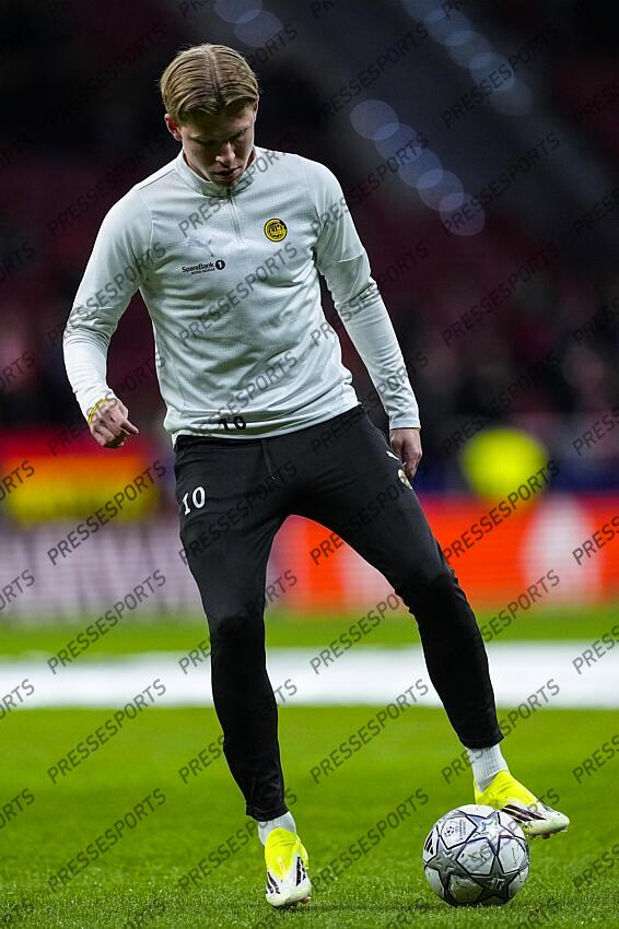 Jens Petter Hauge of FK Bodo/Glimt warms up during the UEFA Champions League 2025/26 League Phase MD8 match between Atletico de Madrid and FK Bodo/Glimt at Riyadh Air Metropolitano stadium on January 28, 2026 in Madrid, Spain. ATLETICO MADRID-BODO/GLIMT