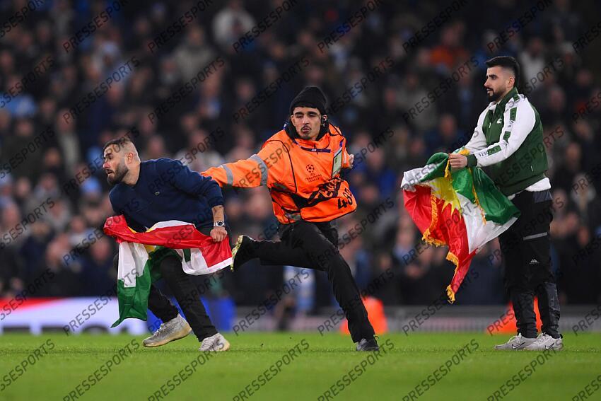 28 January 2026 Manchester, UEFA Champions League football - Manchester City v Galatasaray - pitch invaders at the Etihad Stadium - Photo by Gary Oakes. MANCHESTER CITY-GALATASARAY (2-0)