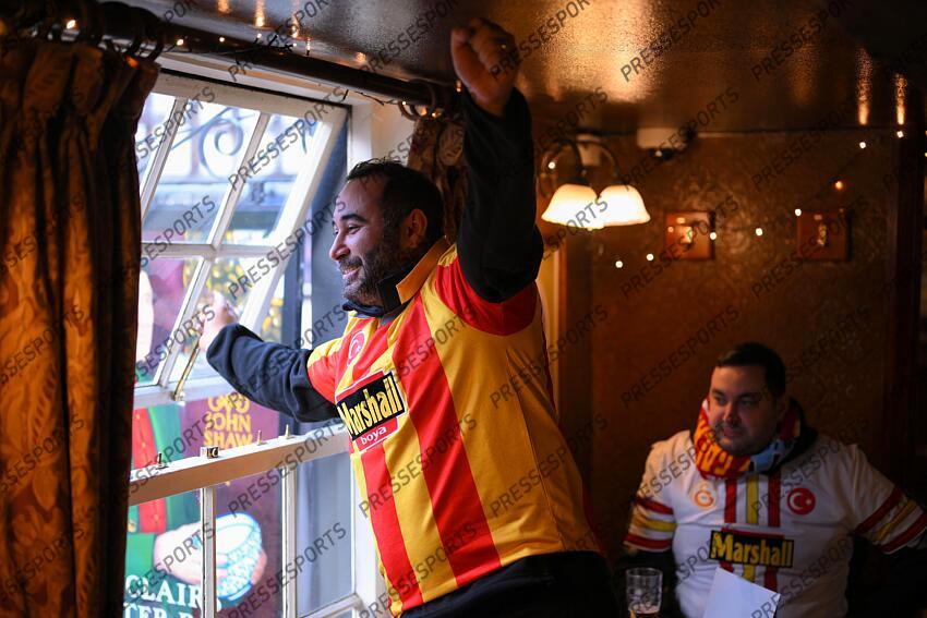 28 January 2026 Manchester, UEFA Champions League football - Manchester City v Galatasaray - Galatasaray fans in a Manchester pub - Photo by Gary Oakes. MANCHESTER CITY-GALATASARAY (2-0)