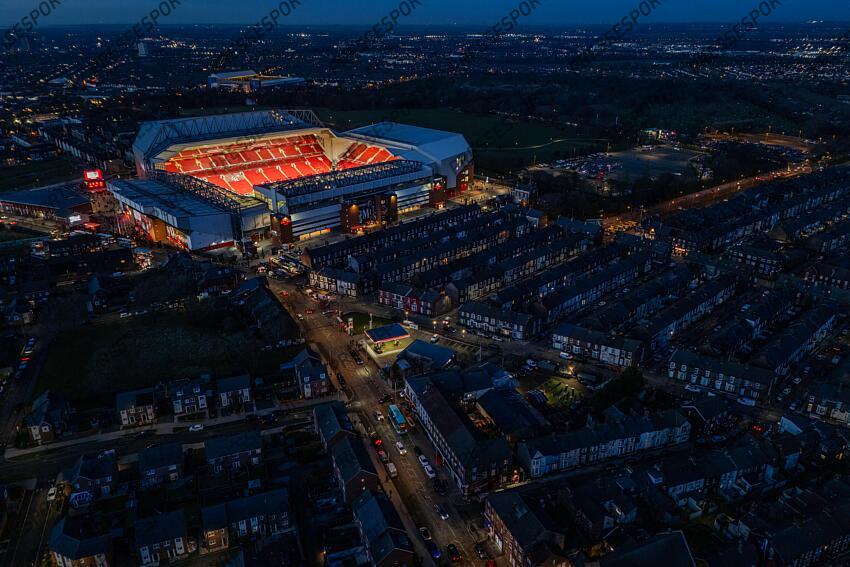 28th January 2026 - UEFA Champions League - League Phase - Liverpool v Qarabag - A general aerial view (GV) of Anfield - Photo: Simon Stacpoole / Offside. LIVERPOOL-KARABAGH FC (6-0)