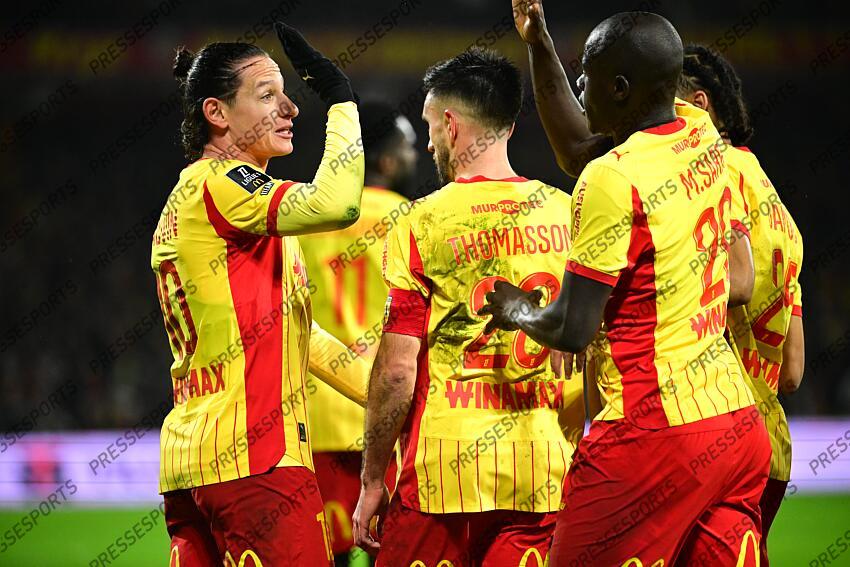 thauvin (florian) thomasson (adrien) sarr (malang) FOOT L1 2026 LENS-LE HAVRE (1-0) STADE BOLLAERT DELELIS LENS FRANCE 30/01/2026 PAPON BERNARD joie du but refusé de thomasson