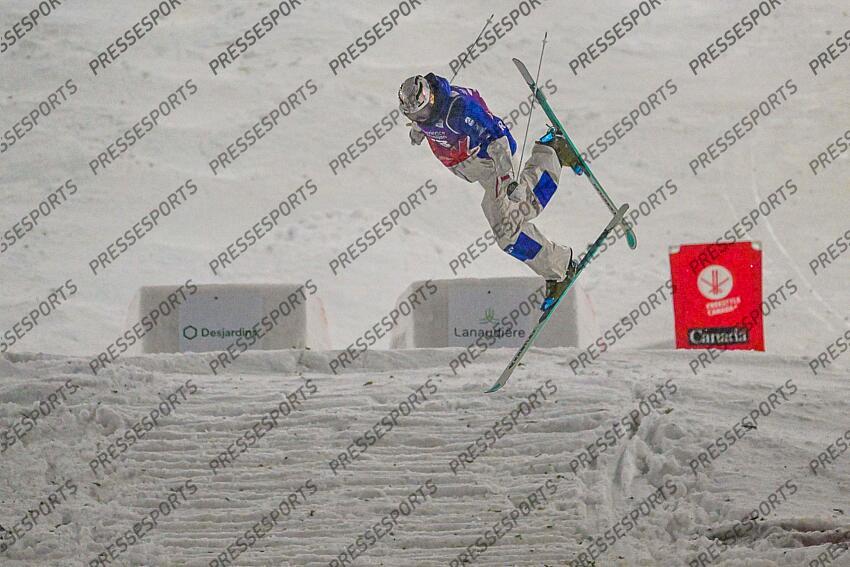 VAL ST COME, CANADA - JANUARY 9: Arthur De Villaucourt of Team France in action during the FIS Freestyle Moguls World Cup Men's and Women's Moguls on January 9, 2026 in Val St Come, Canada. (Photo by Eric Bolte/Agence Zoom) EPREUVES VAL ST COME
