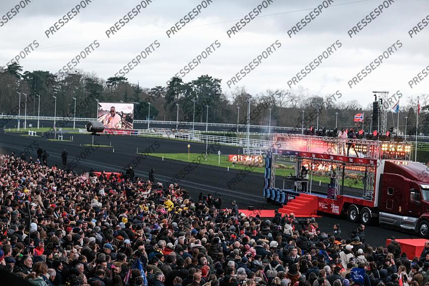 Singer GIMS, performing during the pre race show, at the Grand Prix d'Amerique. Paris-Vincennes Racecourse, Vincennes, January 25, 2026 GRAND PRIX D'AMERIQUE