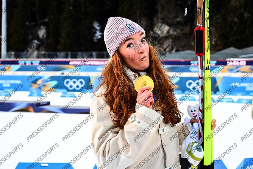 jeanmonnot (lou) - (fra) - BIATHLON JO MILAN CORTINA 2026 2026 RELAIS 4X6 KM MIXTE BIATHLON ARENA ANTHOLZ ANTERSELVA ITALIE 08/02/2026 GARNIER ETIENNE photo retouchee