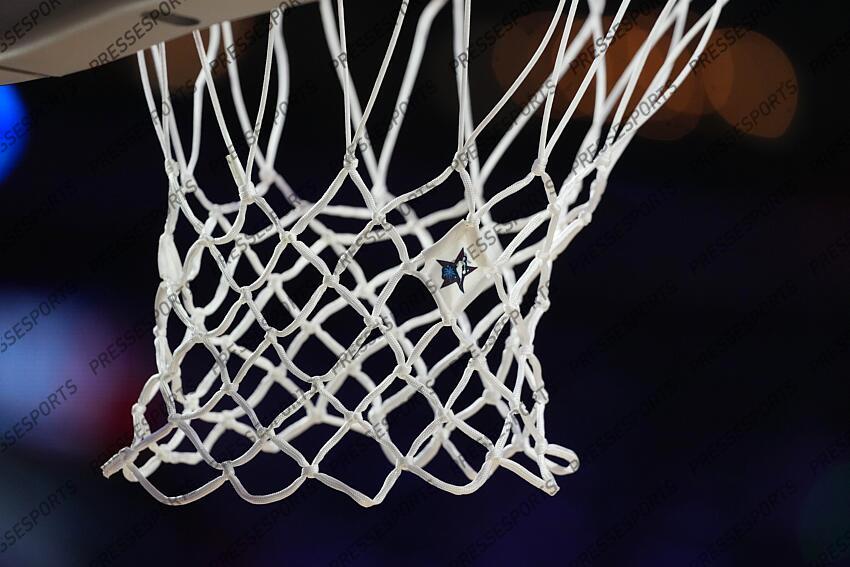 Feb 15, 2026; Inglewood, California, USA; A detailed view of the NBA All Star logo before the 75th NBA All Star Game at Intuit Dome. Mandatory Credit: Kirby Lee-Imagn Images NBA: 75th All Star Game NBA: 75th All Star Game