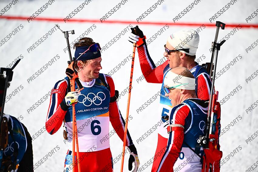 laegreid (sturla holm) - (nor) - christiansen (vetle sjaastad) - (nor) - daleskjevdal (johannes) - (nor) - BIATHLON JO MILAN CORTINA 2026 2026 MASS START 15 KM HOMMES BIATHLON ARENA ANTHOLZ ANTERSELVA ITALIE 20/02/2026 GARNIER ETIENNE