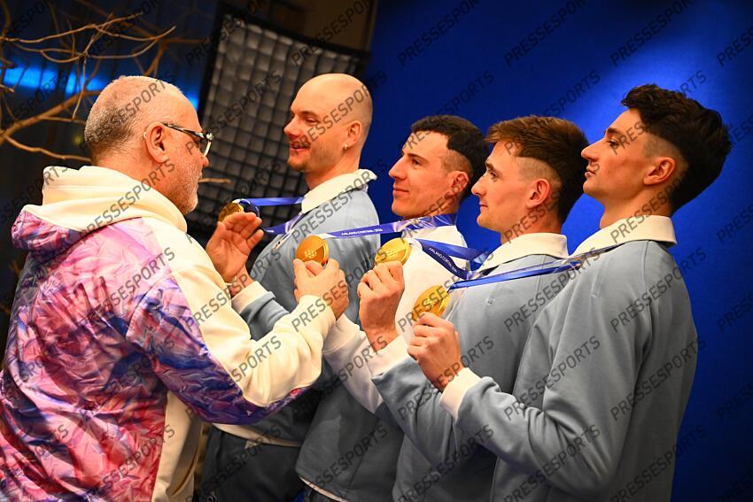 jacquelin (emilien) - (fra) - fillon maillet (quentin) - (fra) - claude (fabien) - (fra) - perrot (eric) - (fra) - BIATHLON JO MILAN CORTINA 2026 2026 RELAIS 4X7.5 KM HOMMES BIATHLON ARENA ANTHOLZ ANTERSELVA ITALIE 20/02/2026 GARNIER ETIENNE