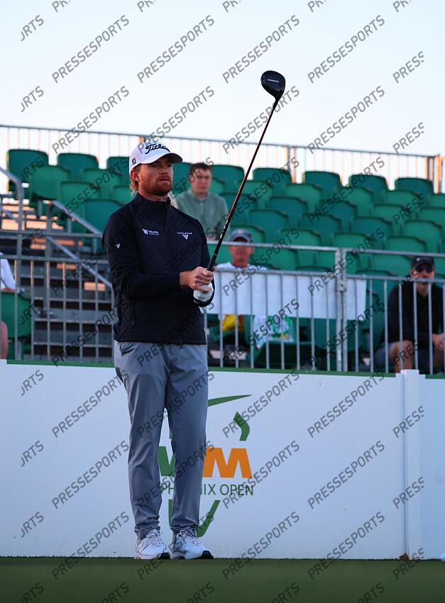 Feb 5, 2026; Scottsdale, Arizona, USA; Danny Walker looks to tee off hole 1 during the first round of the WM Phoenix Open golf tournament. Mandatory Credit: Anna Carrington-Imagn Images PGA: WM Phoenix Open - First Round