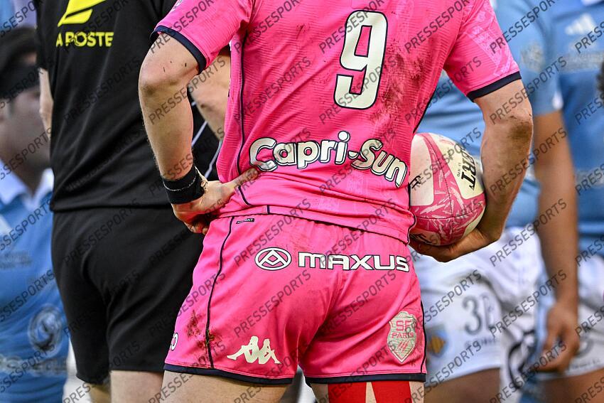 Illustration of the jersey of Stade Français with Capri Sun and Maxus logo during the Top 14 match between Stade Francais and USAP Perpignan on February 28, 2026 at Stade Jean Bouin in Paris, France. STADE FRANCAIS-PERPIGNAN (42-21)
