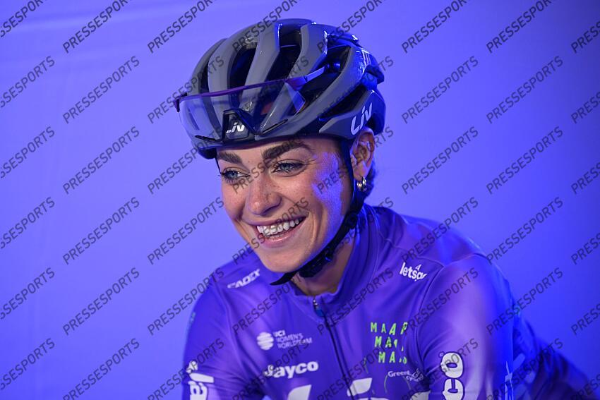 NINOVE, BELGIUM - FEBRUARY 28 : Paternoster Letizia (ITA) of Liv AlUla Jayco before the start of the race during the 21nd edition of Omloop Het Nieuwsblad Women an UCI Women's World Tour 1.WWT one day cycling road race for Women Elite of 137 km with start in Ghent and finish in Ninove on February 28, 2026 in Ninove, Belgium, 28/02/2026 ( Motordriver Guy De Vuyst - Photo by Tomas Sisk / Photonews OMLOOP HET NIEUWSBLAD FEMMES